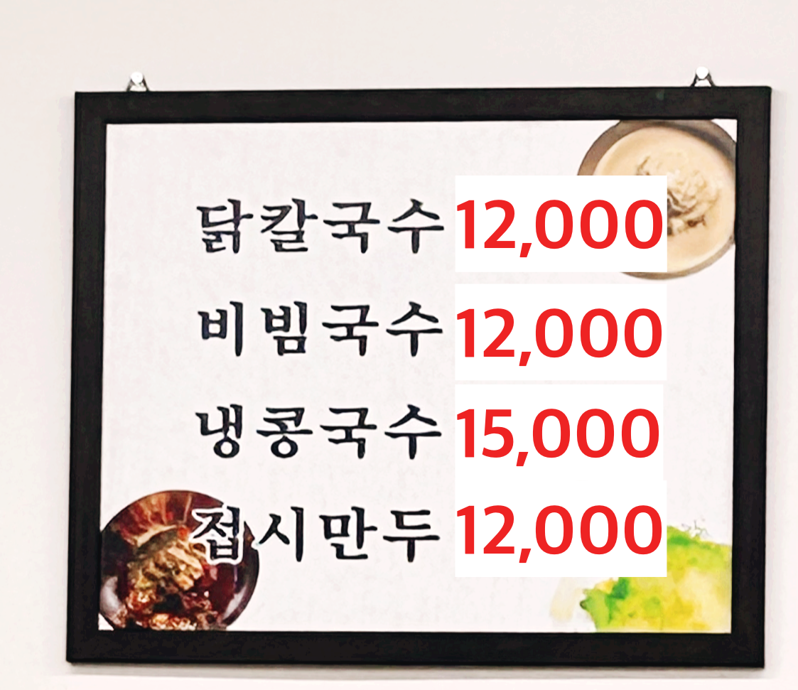 작년 4월에 진주집을 방문했는데요. 그때보다 메뉴 가격이 천원씩 올랐습니다. 이제 진주집의 유명한 콩국수는 15,000원에 육박하네요. 여기 이 진주집이 좋은 이유는 여름엔 냉콩국수와 비빔국수를 겨울에는 닭칼국수와 육개장 칼국수 같은 뜨끈한 국물 있는 음식을 주문할 수 있다는 것입니다. 참고로 아직 닭칼국수는 먹어 본 적이 없지만, 방문했을 때, 드시는 분들이 꽤 있었습니다.
