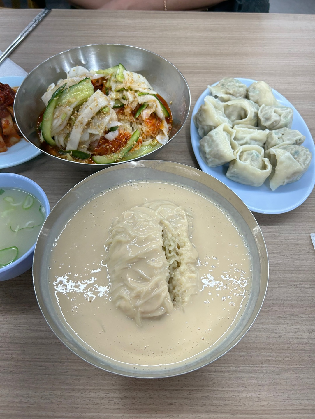 새콤달콤한 맛이 일품인 비빔국수는 제가 임신했을 때 정말 땡기던 음식입니다. 너무 달지도 그렇다고 너무 시지도 않은 적당하게 중도를 지키는 양념장 맛과 쫄면 같은 쫄깃한 면발이 예술입니다. 아무렇게나 올려져 있는 것처럼 보이지만 오이와 무 고명도 함께 면과 어우러지면서 아삭아삭한 식감을 줍니다. 콩국수도 맛있지만 비빔국수도 그에 못지않게 맛있습니다.