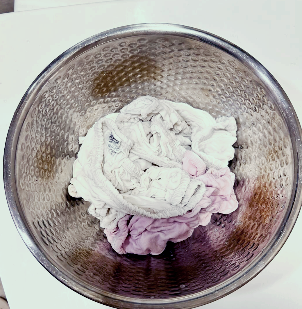 4. 속옷을 물로 여러 번 헹궈서 비눗기를 빼줍니다. 속옷에 묻었던 얼룩 대부분이 깔끔하게 지워진 것을 볼 수 있습니다.
