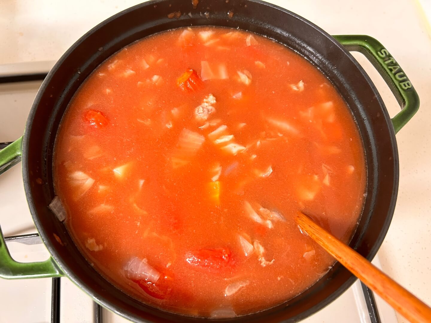 3. 저는 따로 토마토를 넣지 않아 홀토마토 통조림 2개와, 물, 카레가루, 월계수잎을