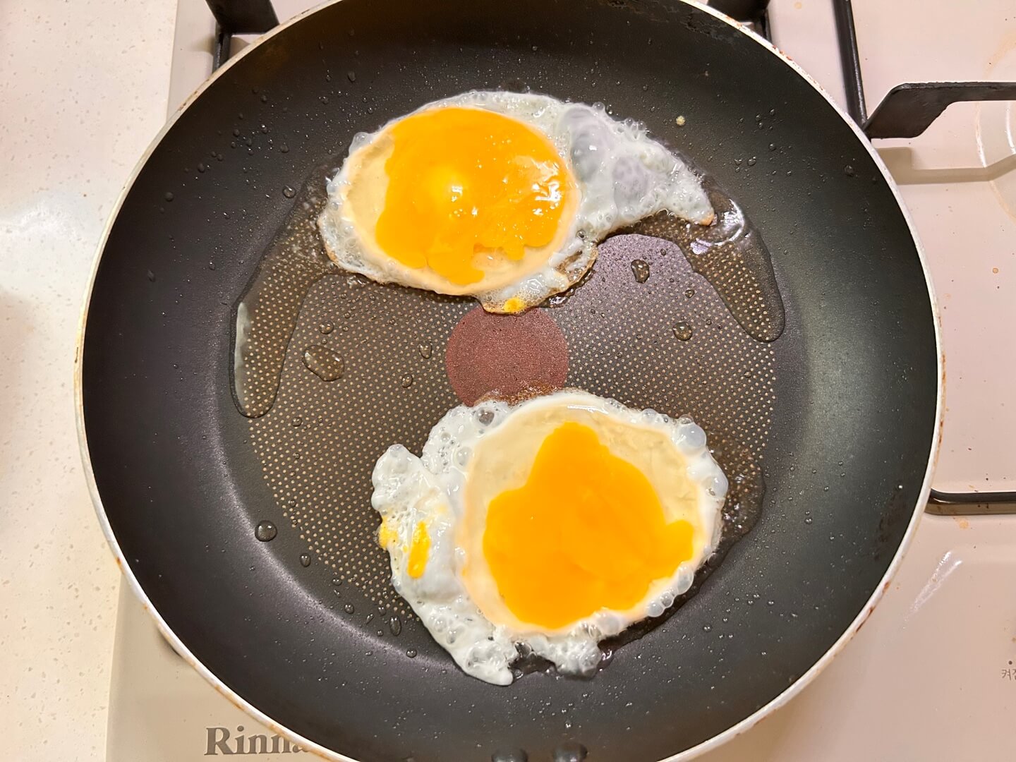 2. 계란은 노른자는 깨서 프라이를 해 주고 베이컨도 잘 구워줍니다.
