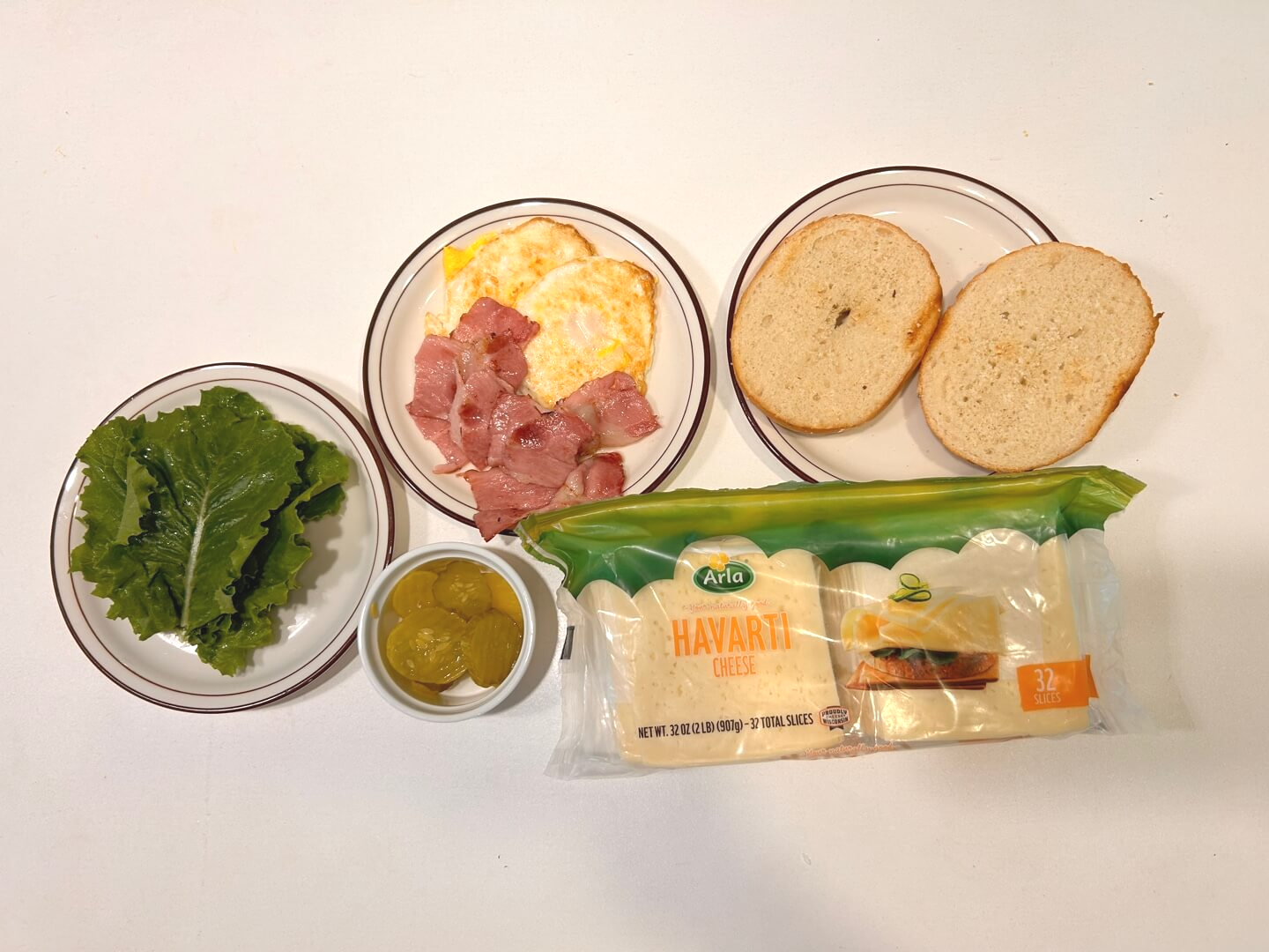 1. 베이글( 코스트코에서 구입: 어니언 베이글 사용)2. 계란 1개3. 베이컨 2줄 혹은 샌드위치 햄4. 청상추5. 피클 혹은 오이6. 슬라이스 치즈(코스트코에서 구입: 하바티 치즈)