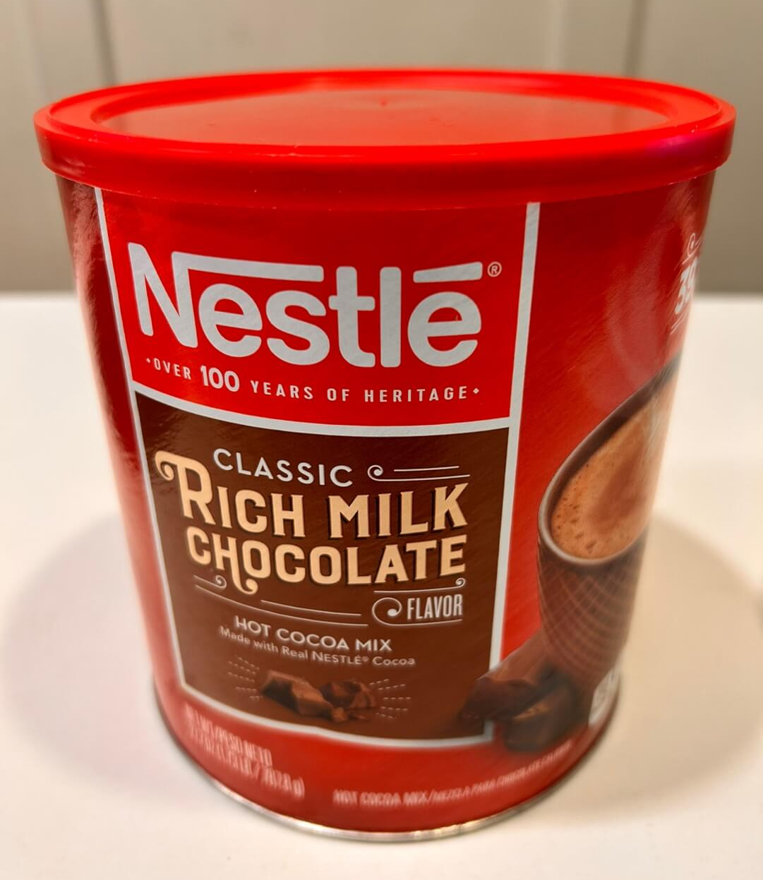 네슬레 핫초코는 스위스의 다국적 식품 기업인 네슬레가 생산하는 핫초코입니다. 1938년 네덜란드에서 처음 개발되었으며, 현재 전 세계 100여 개국에서 판매되고 있습니다. 오늘 소개해 드릴 핫초코는 리치 초콜릿으로 풍부하고 깊은 코코아 맛을 자랑합니다. 이 제품의 용량은 780g 정도로 20g 기준 약 39회 분량입니다. 제가 구매했을 당시에는 약 만 원 미만이었던 것으로 기억합니다.