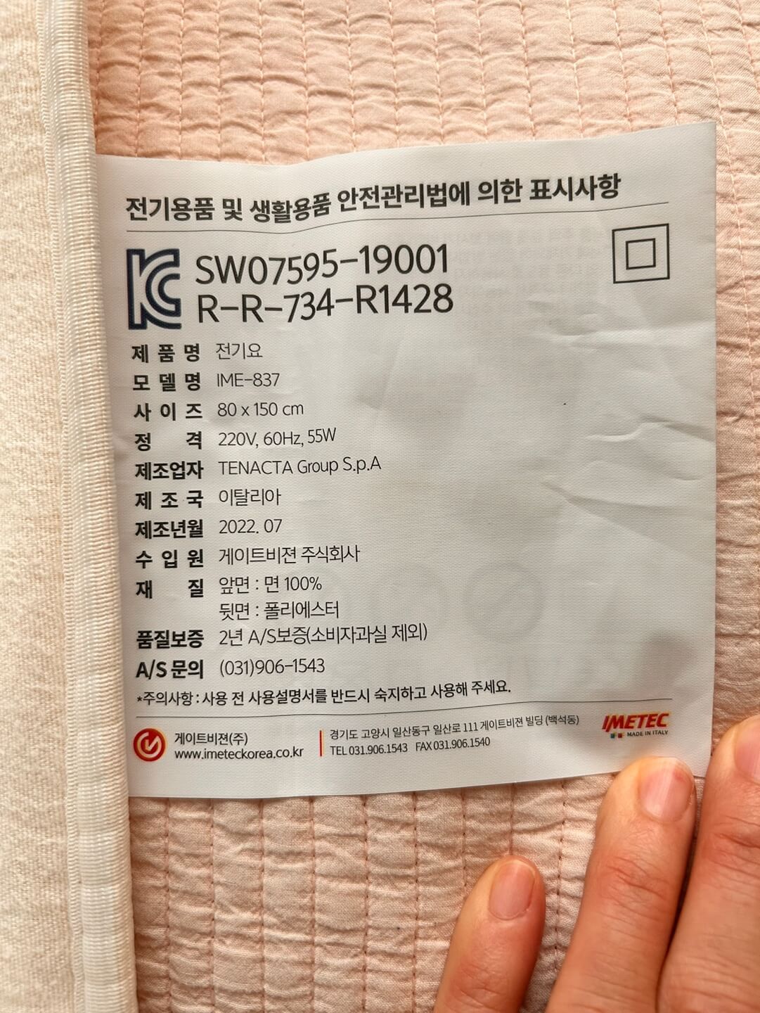 코스트코에서 이메텍 전기요를 할인한다는 소식에 작년까지 쓰던 전기매트를 버리고 새로 장만했습니다. 이상하게 자꾸 전기가 통하는 느낌이 들었기 때문입니다. 개당 가격은 79,900원이었으며 지금은 할인이 종료되었습니다. 제품코드는 IME-837입니다.