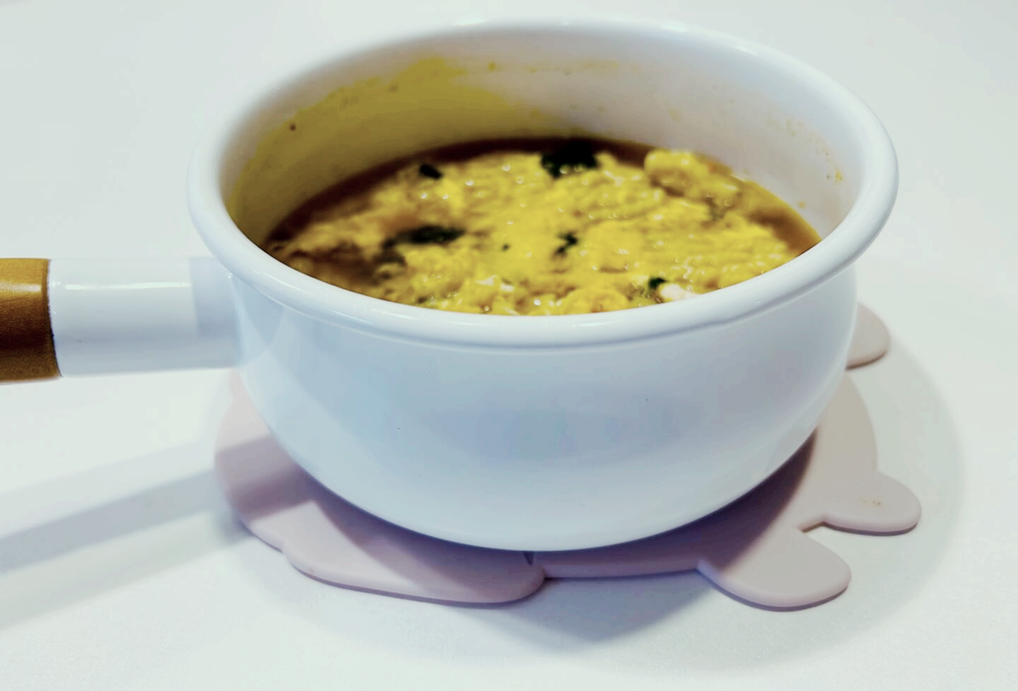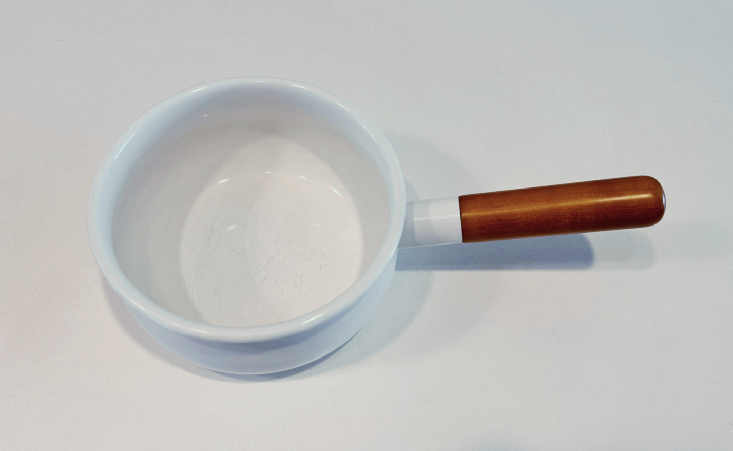흰색과 우드 느낌의 조화가 아름다운 노다호로 법랑 냄비는 라면 1인분 정도 끓일 수 있을 정도의 크기입니다.