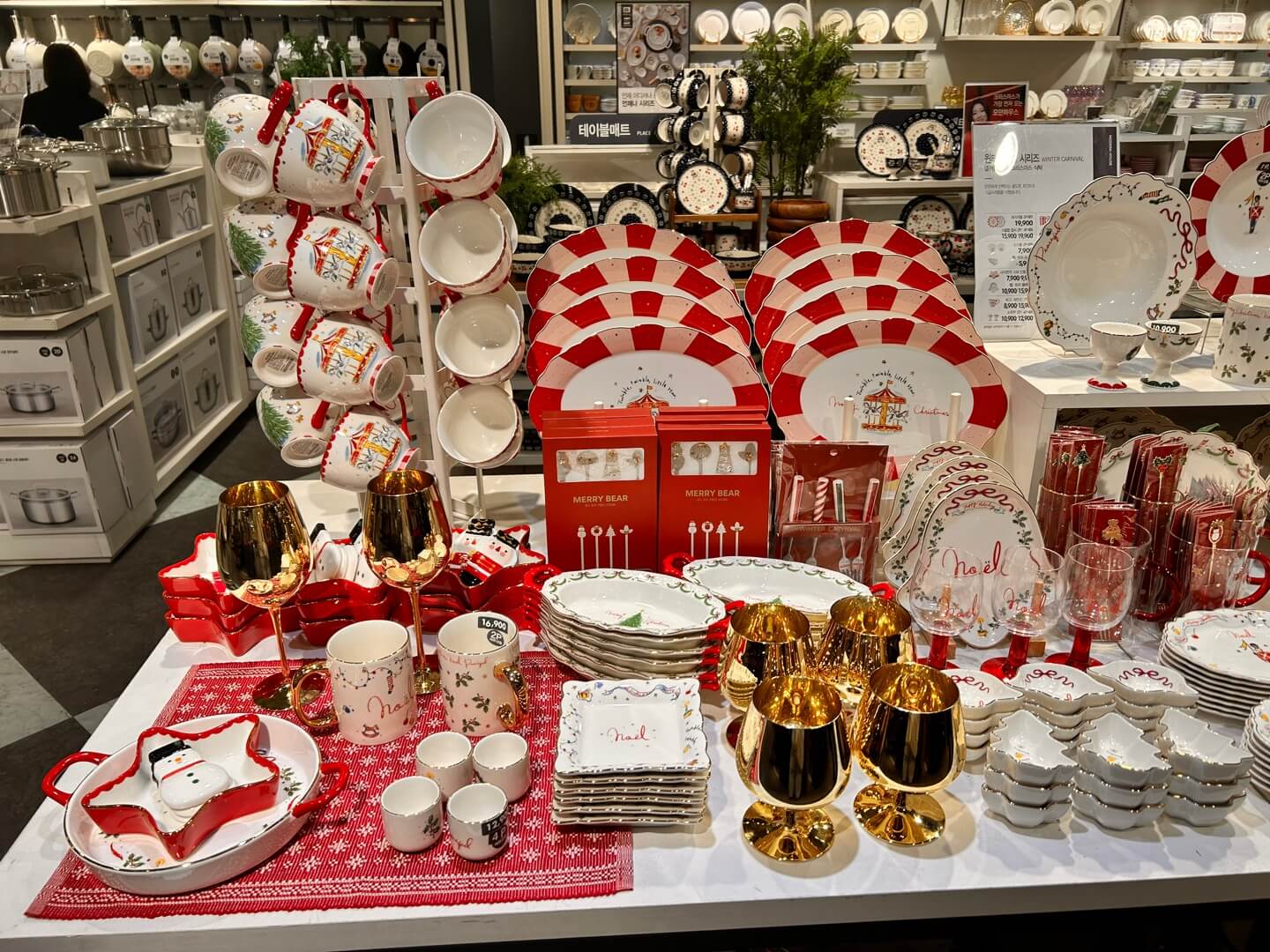 하지만 저는 최근 미니멀리즘을 추구하고 있는 터라 저런 용품까지 구매했다가는 집안 가득 물건들이 쌓일 것이기에 눈물을 머금고 필요한 제품만 구매하고 돌아왔습니다. 크리스마스 분위기의 식기제품은 살 때는 좋지만, 시즌 한정으로 쓸 수밖에 없어서 사용이 한정적인 점이 단점입니다.