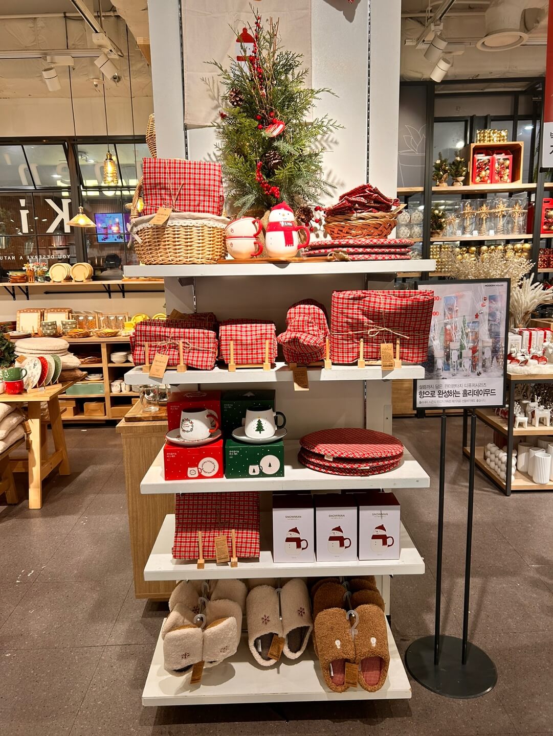모던하우스에서는 크리스마스 파티 분위기를 돋구어주는 식기용품들도 판매 중이었는데요. 귀여운 곰돌이 그림이 그려진 접시와 눈사람, 산타 등의 크리스마스 심벌을 활용한 캐릭터들이 눈길을 끌었습니다. 아기자기한 머그컵에 핫초코 한잔 마시면 딱 좋겠다는 생각이 들었습니다.