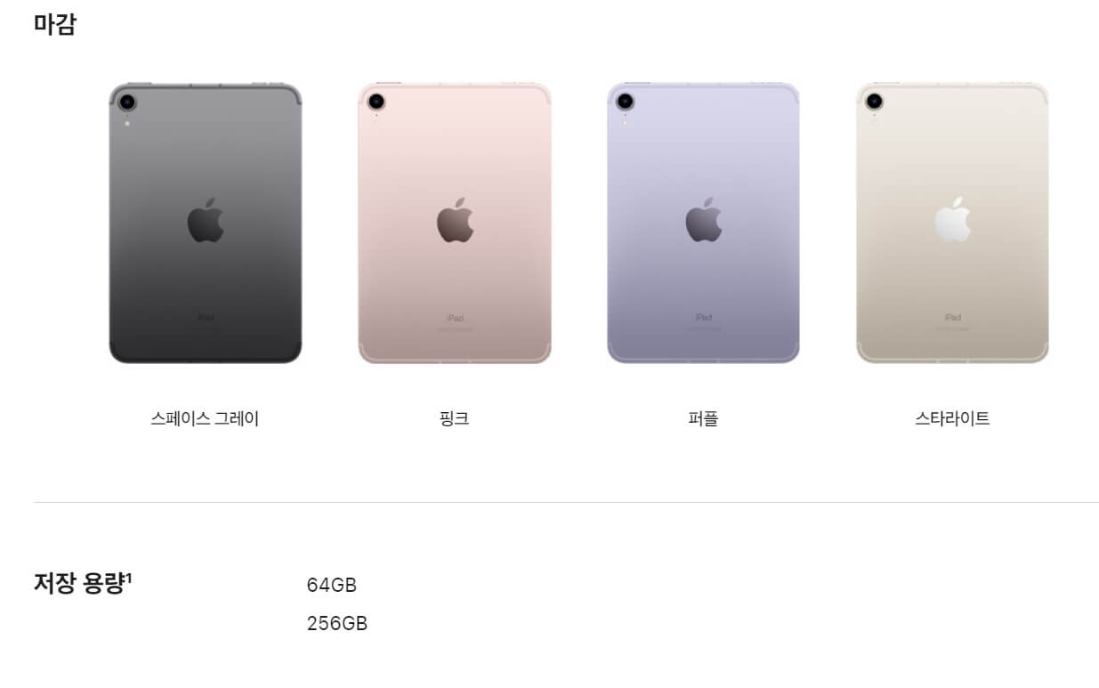 한 때 작은 태블릿이 인기가 있었던 적이 있었습니다. 가볍고 작아서 휴대성이 뛰어난 아이패드 미니 제품은 거거익선인 요새의 유행에 따라 인기가 다소 사그라든 상태입니다. 195.4mm X134.8mm의 사이즈에 무게가 고작 293g밖에 되지 않습니다. 아이패드 미니 제품의 제품 용량은 64G와 256G 두 가지로 되어 있으며, 256G 기준 공식 홈페이지 가격은 1,009,000원부터 시작합니다.