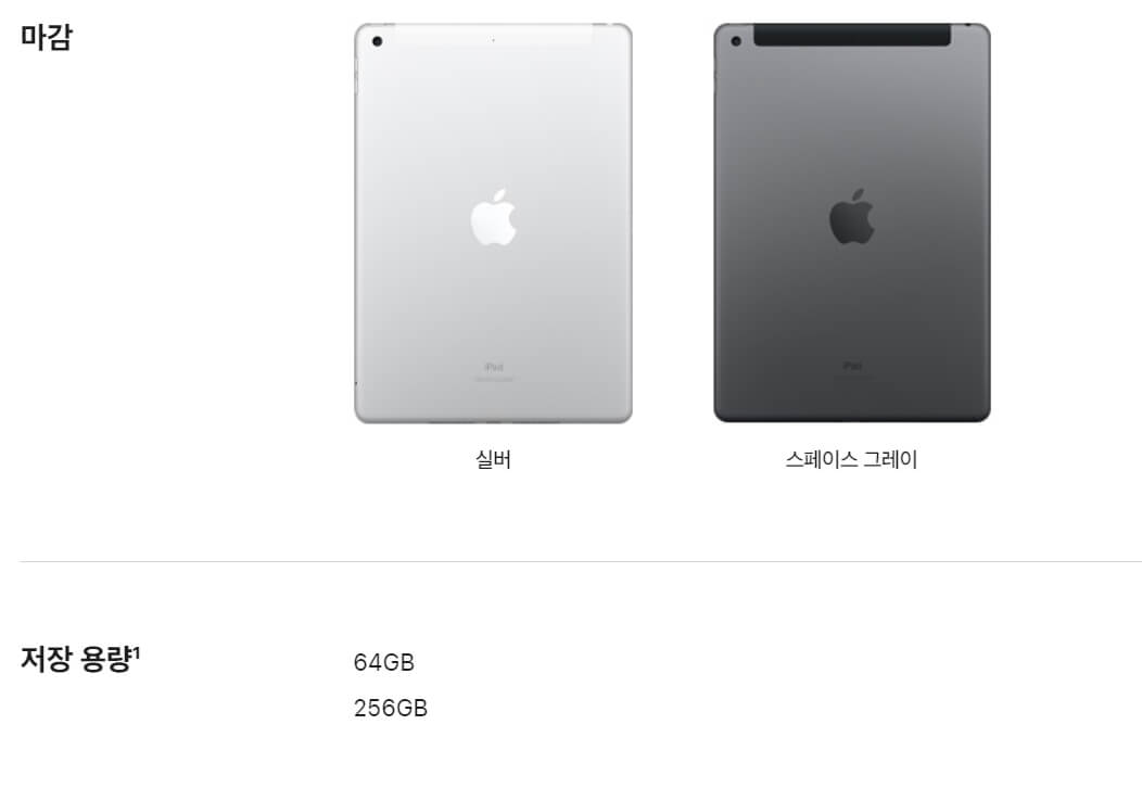 혹시나 해서 드리는 말씀이지만, 아이패드 용량은 거거익선이기 때문에 절대적으로 256G를 구매하시기를 추천드립니다. 일단 기본적으로 응용프로그램이 차지하는 용량이 7~8기가 정도이고, 사진이나 동영상, 혹은 앱을 다운로드하면, 64G로는 턱없이 부족하기 때문입니다.