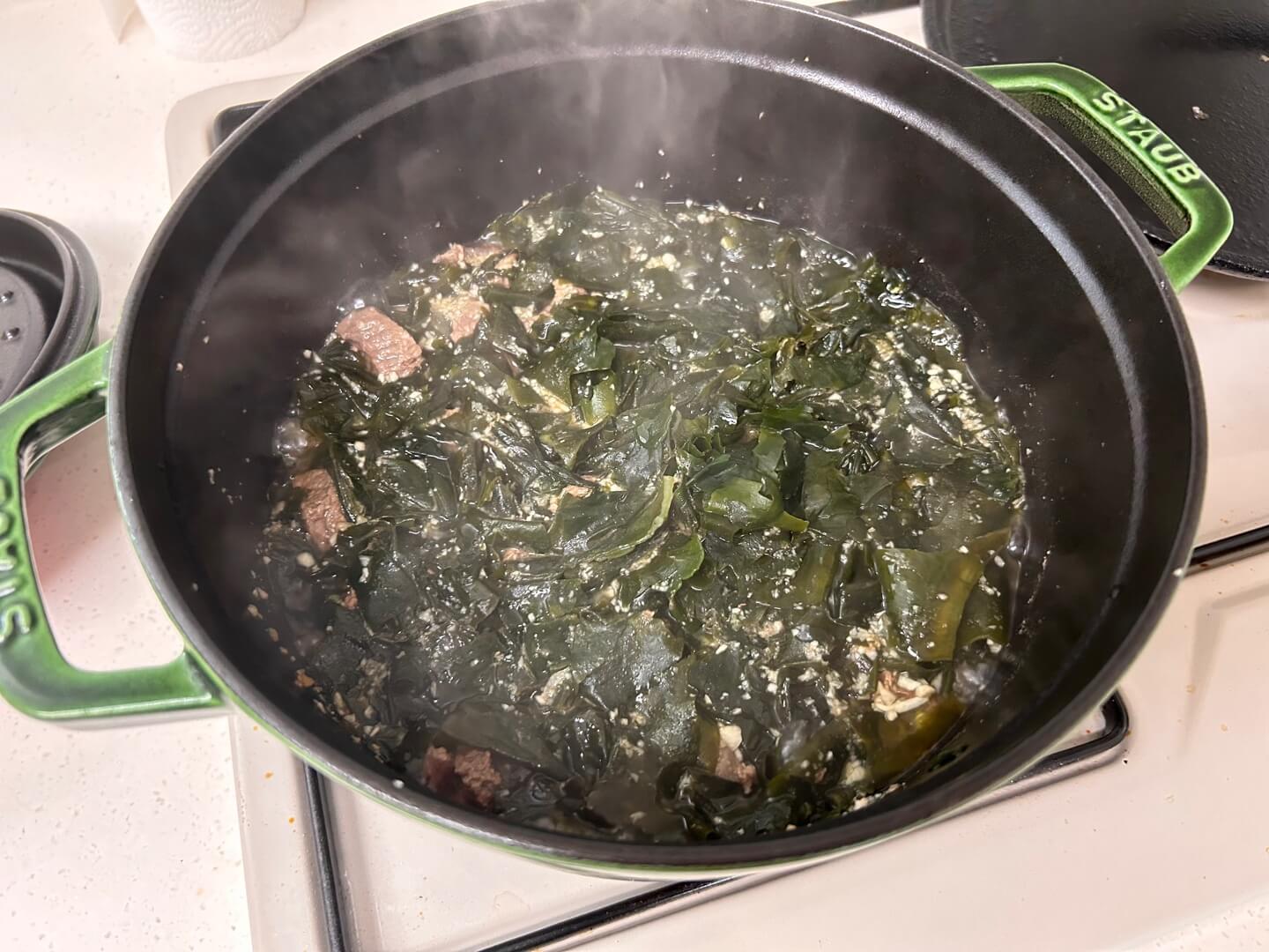 그러면 미역과 소고기 국물이 꽤 우러난 것을 볼 수 있는데요.