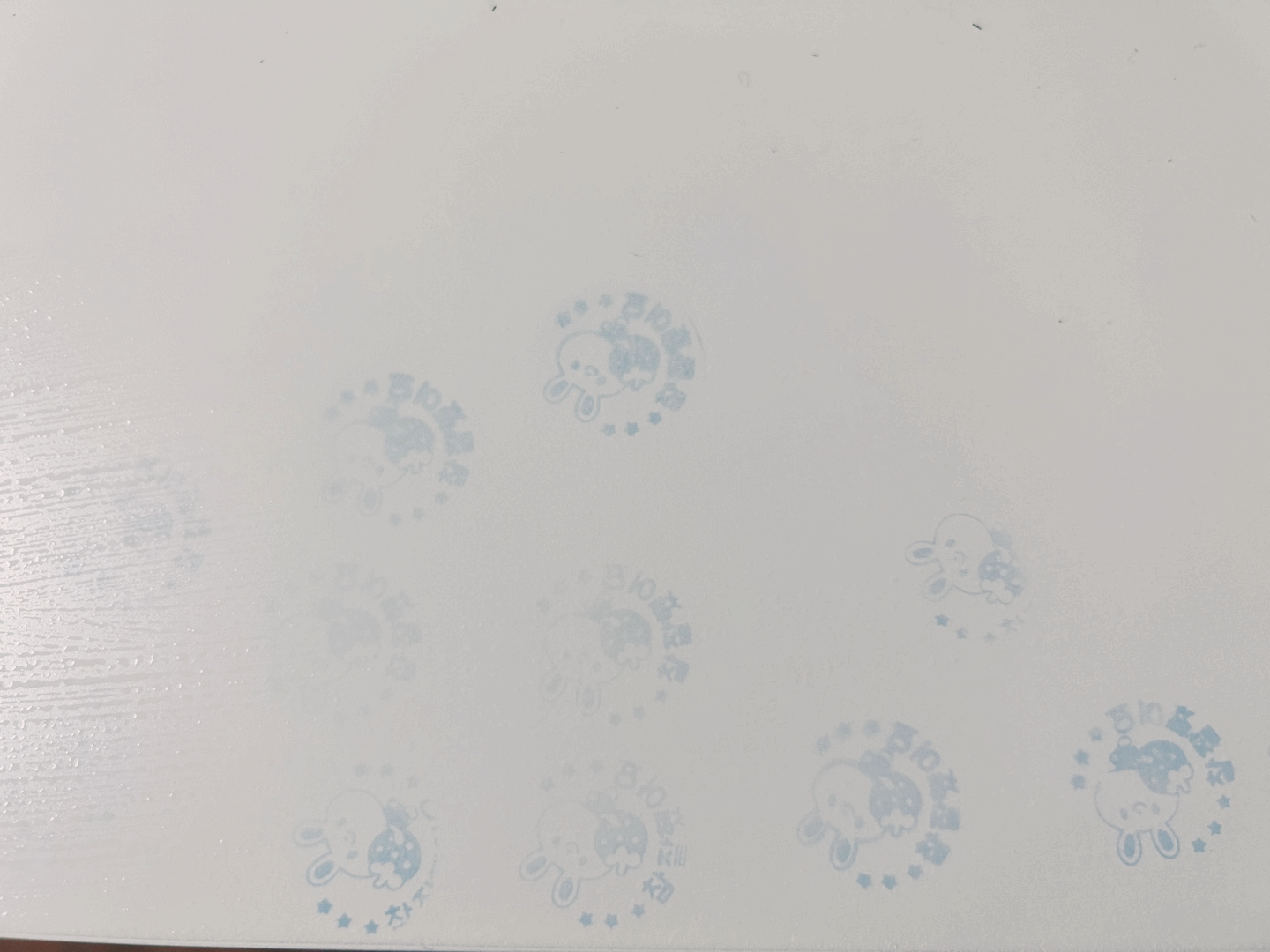 이 사진은 이미 1차 지원군인 매직블록이 지나간 자리입니다. 연필 등은 손쉽게 물을 묻힌 매직블록으로 지워졌으나, 스탬프와 같은 잉크재질은 흰 책상에 여전히 자태를 뽐내고 있습니다. 여기서 그만둘 수는 없습니다. 다른 지원군을 요청해 봅니다.