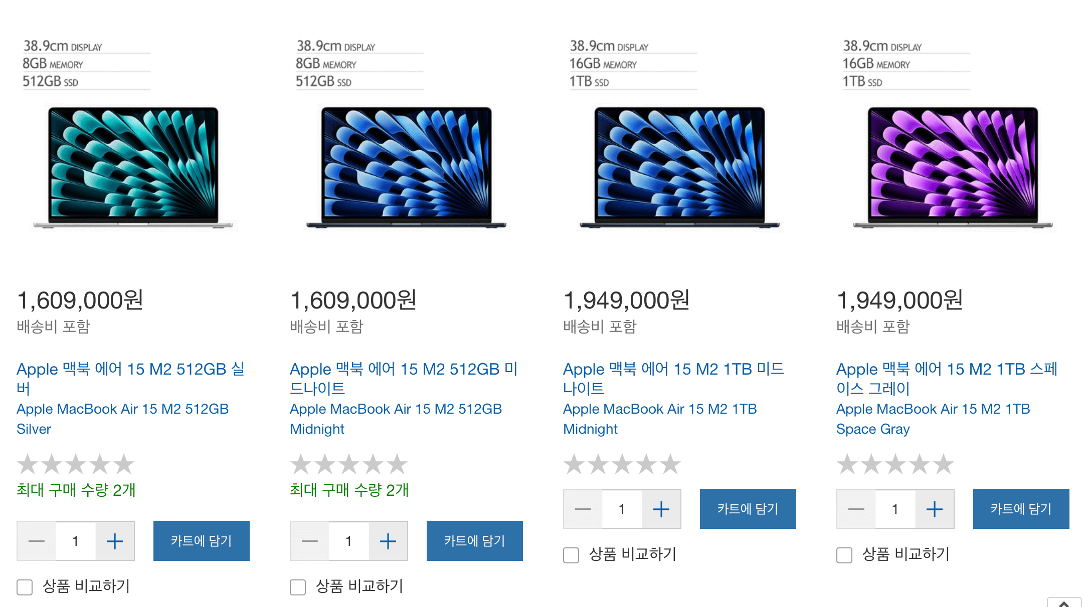 - 맥북 에어 M2 15 타 사이트 가격비교