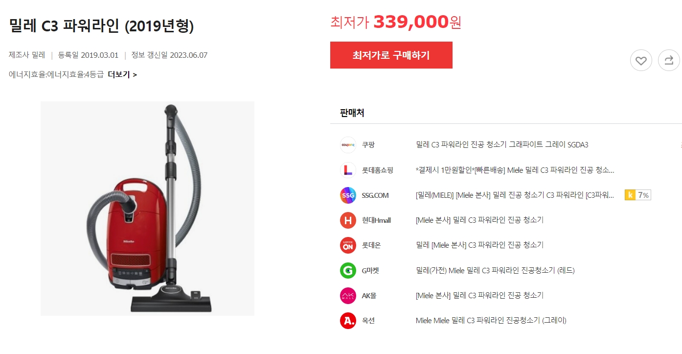 현재 2019년 형 밀레 C3 파워라인은 30만 원 초반대에 판매되고 있습니다. 코스트코에서도 밀레 청소기를 만나 보실 수 있으니 참고하시기 바랍니다.