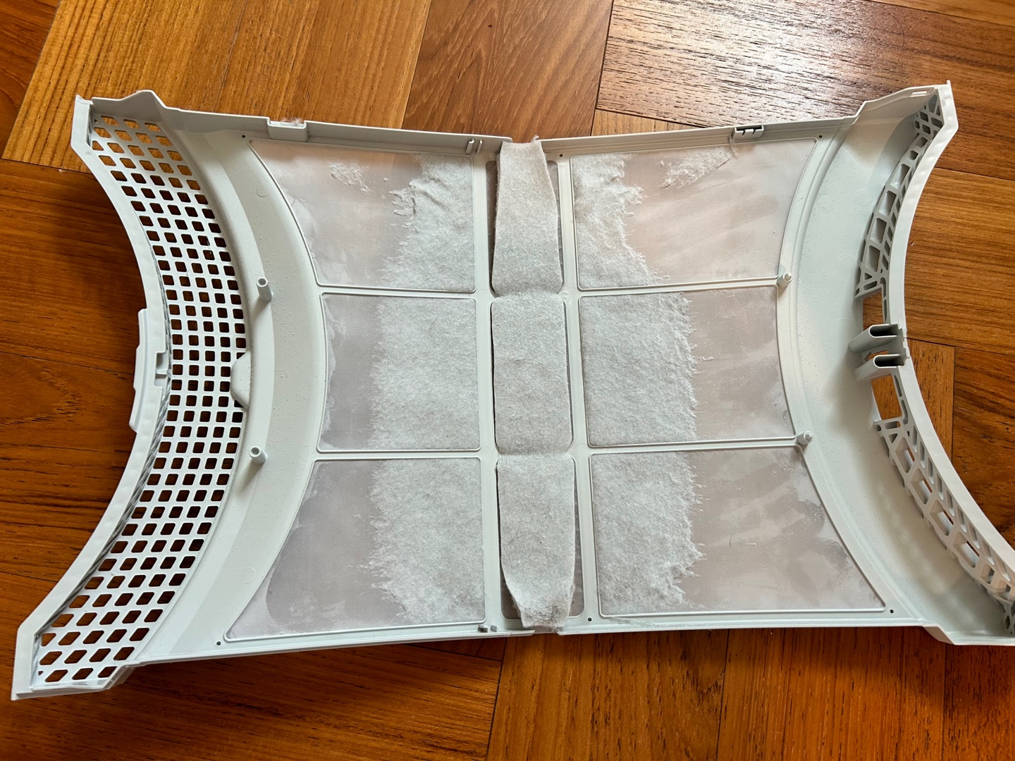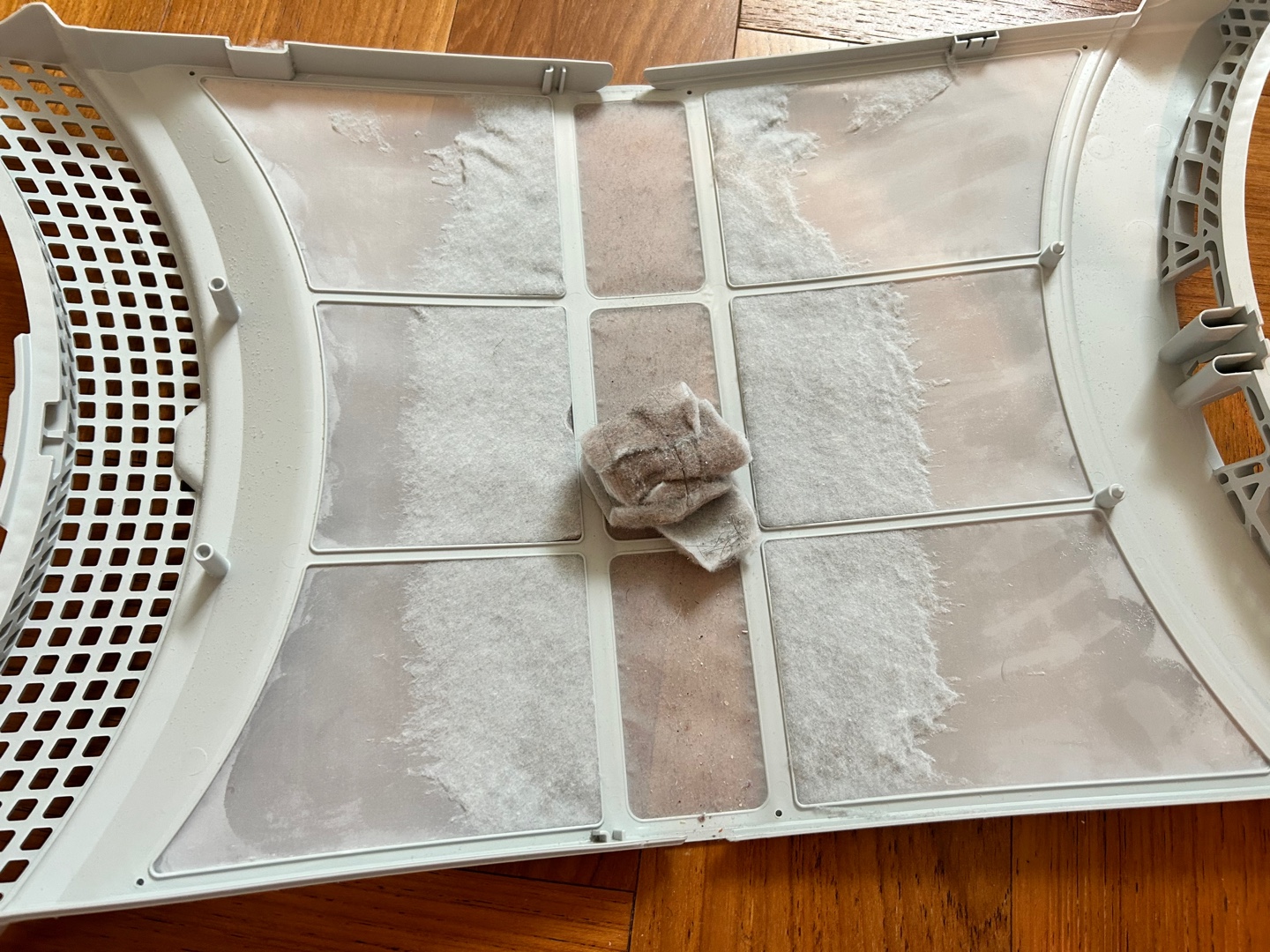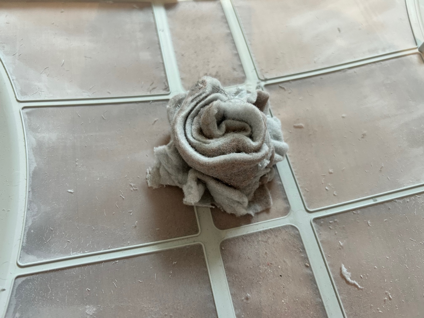 그래서 아이 다루 듯 살며시 가져가서 살포시 열어야 합니다. 근처에 청소기를 항시 대기해 둡니다. 가운데 먼지는 돌돌 말려질 만큼 꽤 많은 양이 발생합니다. 모두 뭉쳤더니 롤케이크 같은 모양이 됩니다. (긍정적인 마인드를 가진 사람에게는 꽃송이처럼 보일 수도)